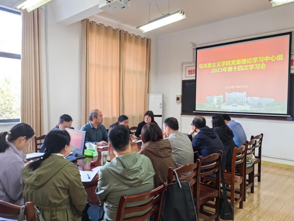 在学院312会议室召开学习贯彻习近平文化思想专题研讨会暨2023年党委理论学习中心组第十四次学习(扩大)会。学院班子成员、党委委员、支部书记、教研室主任、科级干部参会,会议由学院党委书记徐惠主持。