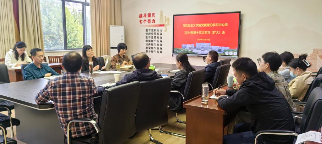 在综合楼324会议室召开2024年党委理论学习中心组第十三次学习(扩大)会议。学院党委委员、党支部书记、科级干部参加会议。会议由学院党委书记徐惠主持。
