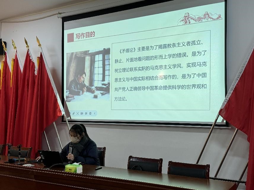 活动在读毛泽东著作分享活动中来开序幕。蔡正婷同学分享的《矛盾论》着重于矛盾问题的辩证法,强调矛盾问题在认识论与方法论上的意义,从哲学上论证了把马克思主义普遍原理与中国革命实际相结合的必要性,批判了教条主义,提出了哲学思想的理论基础。李梦真、刘艳同学分享的《实践论》则强调了认识的辩证法,重点在于如何用既有理论改造世界,同时提出要发现新情况、提出新任务、创造新理论、开创新局面,强调了实践的重要性。