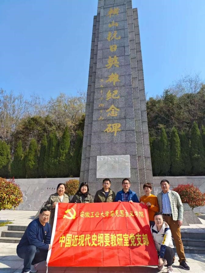 为深化党史学习教育,推动思政课程与红色文化深度融合,322日,中国近现代史纲要教研室党支部组织党员前往马鞍山市博望区横山抗日英雄纪念碑,开展重温入党誓词 赓续红色血脉主题党日活动。此次活动通过实地研学、现场教学与誓词宣誓相结合的方式,将党的历史与纲要课程教学实践紧密结合,进一步强化党员教师的使命担当与育人职责。