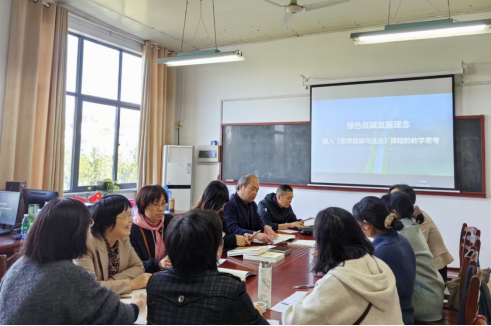 本次集体备课的主题为:如何将绿色低碳发展理念深度融入《思想道德与法治》课程中,以提升大学生对实现碳达峰碳中和战略目标重要性的认识,推动绿色低碳发展理念进进课堂、进头脑。由王倩、于春莉两位老师进行教学展示。