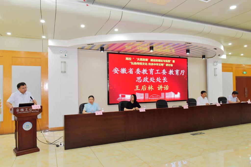 6月22日上午,我校在学术会议中心二楼报告厅举办高校“‘大思政课’建设的理论与实践”暨“弘扬传统文化 传承中华文明”研讨会,本次会议由赌博 主办,赌博 、常州大学赌博 承办来自武汉大学、陕西师范大学、江南大学、合肥工业大学、重庆大学、广东工业大学、南京师范大学等高校赌博 领导、专家学者齐聚一堂,共同探讨“大思政课”建设的理论与实践。省委教育工委教育厅思政处处长王后林到会讲话,赌博 党委副书记王俊致辞。开幕式由校党委宣传部部长王菁主持,省内外高校和马鞍山本地高校赌博 相关负责人和师生代表、赌博 师生等百余人参加了本次会议。