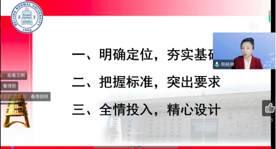 熊晓琳教授作了题为“讲好原理课的思考与实践” 专题辅导报告。熊晓琳教授从“明确定位,夯实基础”“把握标准,突出要求”“全情投入,精心设计”三个方面展开论述。并就如何讲好思政课重点围绕四个方面进行了阐述:一是深耕教材、讲清理论,二是创新方法、用活素材,三是全情投入、以情动人,四是严格自律、知行合一。熊晓琳教授结合自身教学实际,为大家介绍了建设一堂思政课“金课”的经验,即应做到“从一到六”。一是一个红心;二是科研和教学两条腿走路;三是追求讲政治、讲科学、讲故事的“三讲”;四是突出深耕教材,讲清理论、用活教材、创新方法四个基本要求;五是做到用心、用力、用眼、用脑、用情五位一体;六是把握教学设计的六个要素。最后,熊晓琳教授强调必须把讲好思政课当做一项事业来做,鼓励思政课教师要通过日常集体备课活动,将教材体系向教学体系转化,讲好有高度、有深度、有情怀、有温度的思政理论课。