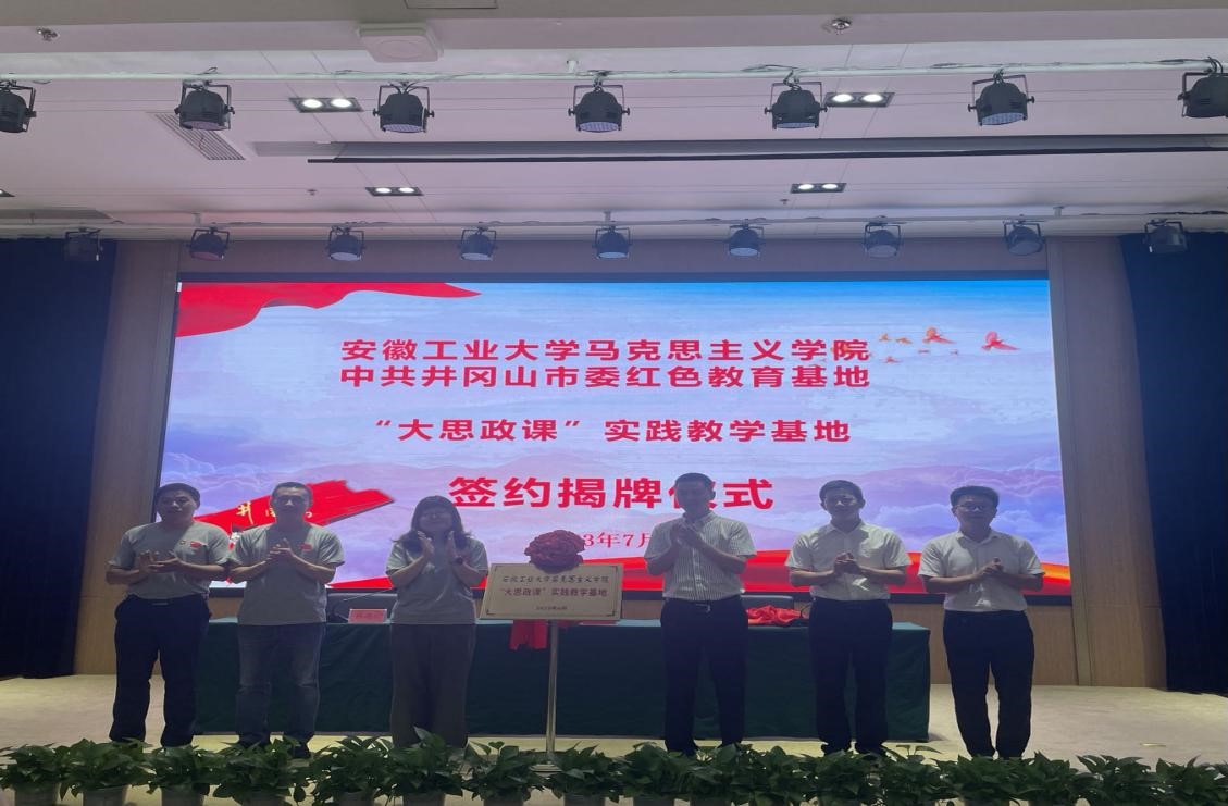 习近平总书记指出,“大思政课”我们要善用之,一定要跟现实结合起来。730日,在圆满完成此次实践研修各项任务之后,作为本次主题实践研修的重要内容之一,赌博 与中共井冈山市委红色教育基地在基地多功能报告厅举行了合作共建“大思政课”实践教学基地签约揭牌仪式。双方领导现场签订共建协议,并举行了揭牌仪式。基地主任谢星驰,徐惠、林忠心出席,基地外联二处钟华主任、带队汤老师等和全体研修班学员参加。校地双方表示,希望能够依托红色资源,创新形式,拉近红色文化与青年学子的距离,加深青年学子对革命精神的认同和理解,用好弘扬革命传统和革命文化、加强社会主义精神文明建设、激发爱国热情、振奋民族精神的生动教材,发挥好“大思政课”实践教学基地传承红色精神、赓续红色血脉、传播红色文化的育人功能。