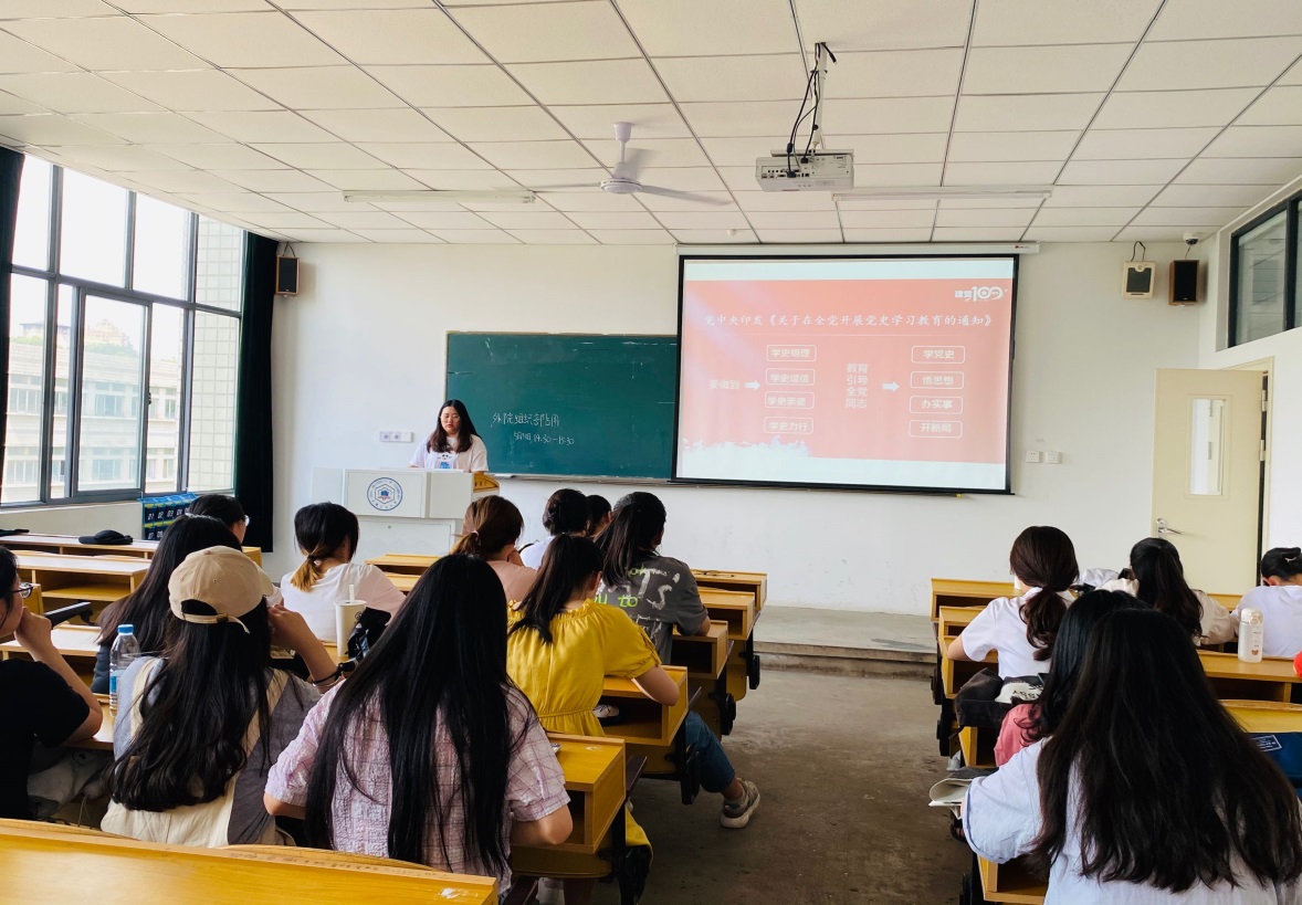 研究生党史学习教育理论宣讲队成员彭菊萍为外国语学院2019级和2020级学生骨干,进行了主题为《百年大党与百年巨变——跨越时空看中国共产党与中国社会发展进步》的党史教育理论宣讲。