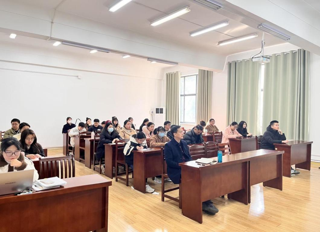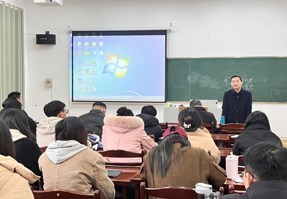 党委副书记、副院长林忠心、辅导员杨婷婷、毕业班班主任沈先成等出席,研三与研二全体研究生参加本次会议。会议采用线上与线下相结合的模式,特邀公共管理与法学院韦子平老师作“公考漫谈”的讲座,林忠心主持会议。