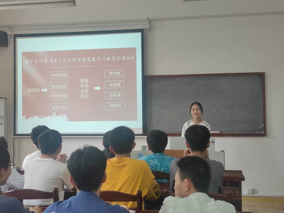 宣讲员左登婷从深入学习领会习近平总书记关于党的历史的重要论述,充分认识开展党史学习教育的重大意义;认真研读党史基本著作,全面了解中国共产党百年奋斗的光辉历程和历史性贡献;深刻把握开展党史学习教育的重点;开展党史学习教育,要学懂弄通做实习近平新时代中国特色社会主义思想这四个方面深入浅出地向同学们讲述了学习党史的意义、党的光辉历程、学习重点、实际做法等,并通过播放视频、现场提问、事例讨论等方式与同学们进行了热烈的交流和互动,同学们纷纷表示受益良多。
