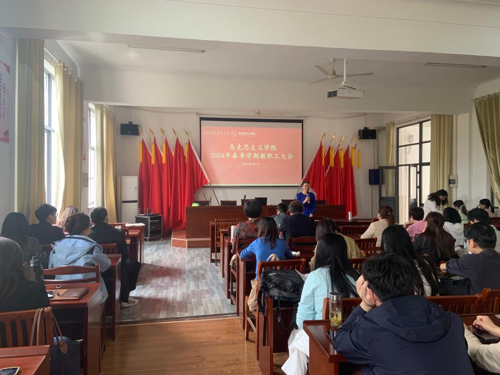 在学院楼325学术报告厅召开2024年春季学期第二次教职工大会,会议由学院党委书记徐惠主持,学院全体教职工参会。