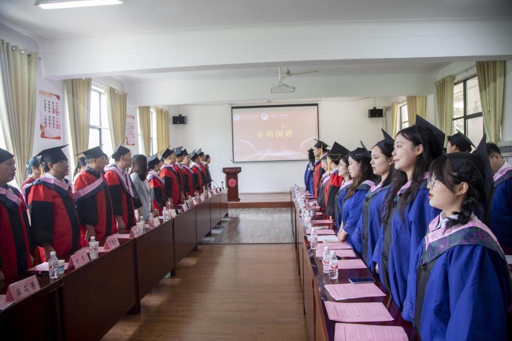 视频播放结束后,在庄严的国歌声中,学位授予仪式正式开始。