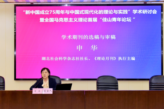原院长代安琼教授主持,湖北社会科学杂志社社长、《理论月刊》执行主编申华,《南京日报》思想理论周刊负责人、主任编辑宋广玉,先后以“学术期刊的选稿与审稿”“报纸理论文章的选题和撰写”为主题作了针对性分享和交流。