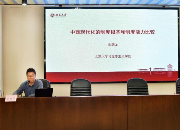 副书记、副院长、博士生导师宋朝龙教授,以“中西现代化的制度根基和制度能力比较”为题,从制度视角理解现代化为切入点,通过古代与现代、西方与中国的对比,凸显了中国特色社会主义制度的优越性。