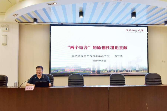 院长、博士生导师吴怀友教授,以“‘两个结合’的原创性理论贡献”为题,从马克思主义中国化时代化发展、中华优秀传统文化传承发展史、人类文明发展进步史等方面系统总结、深刻揭示了“两个结合”原创性贡献方法论的重大意义和具体旨向。
