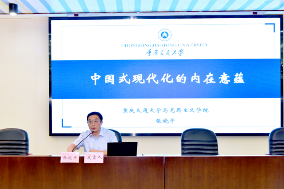 院长张晓平教授,从“中国式”一词蕴含的中外逻辑、“现代化”一词蕴含的古今逻辑、“现代化”对象蕴含的物人逻辑、“道路”一词蕴含的资社逻辑对“中国式现代化的内在意蕴”进行了深入解读。